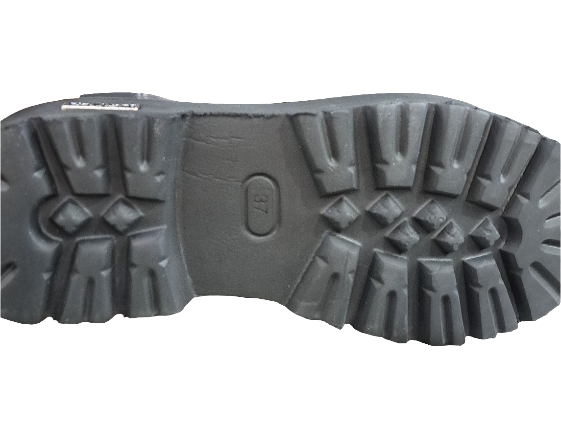 Anfibio invera pelle nera con chiusura a stringhe e suola rinforzata. Chiusura con lacci. Linguetta posteriore con bottone logato. Altezza suola 5cm