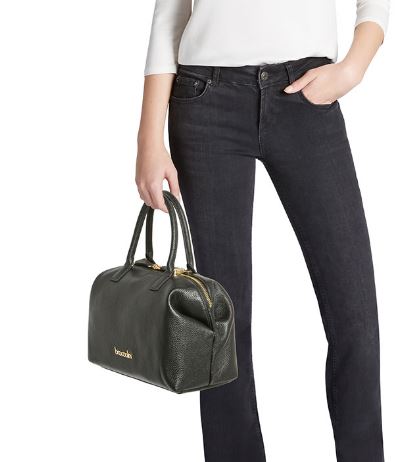 Bauletto in pelle con logo lettering frontale. Doppio manico pelle. Rivestita internamente in tessuto logato. All’interno una pochette estraibile utilizzabile come seconda borsa. Chiusura zip.