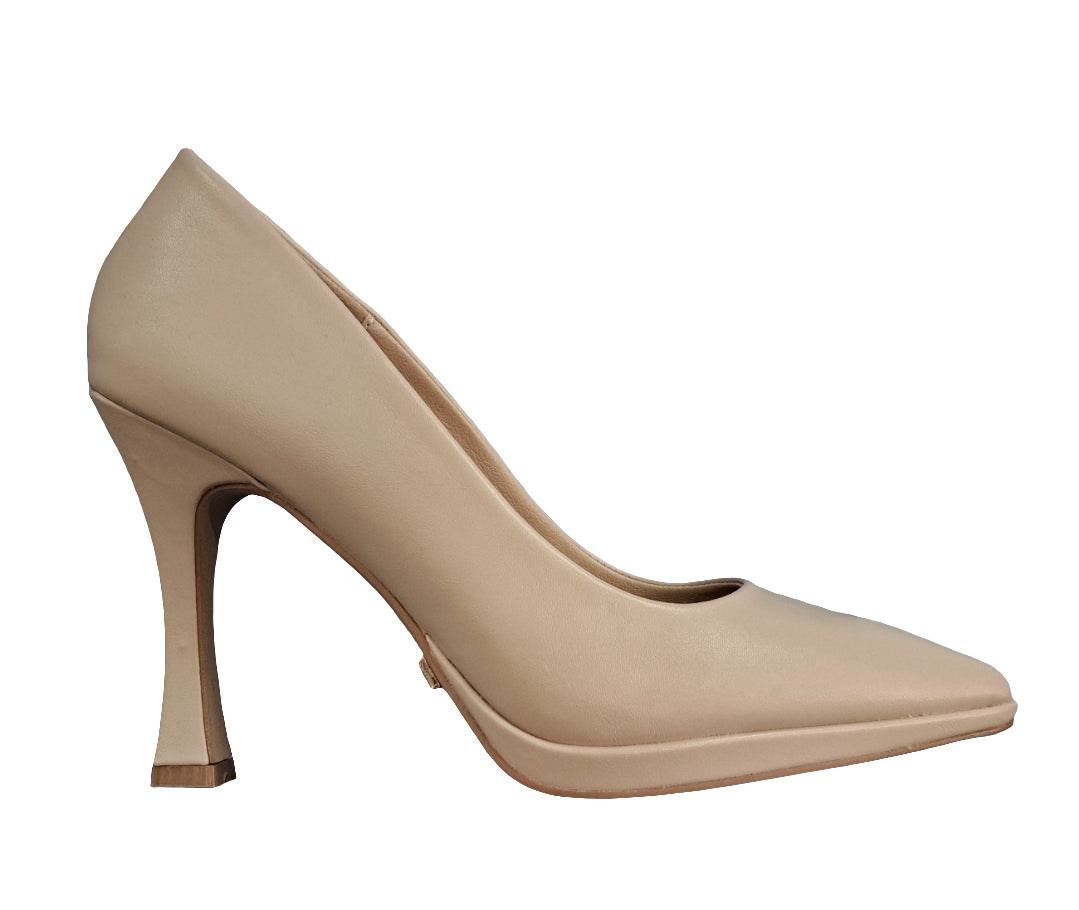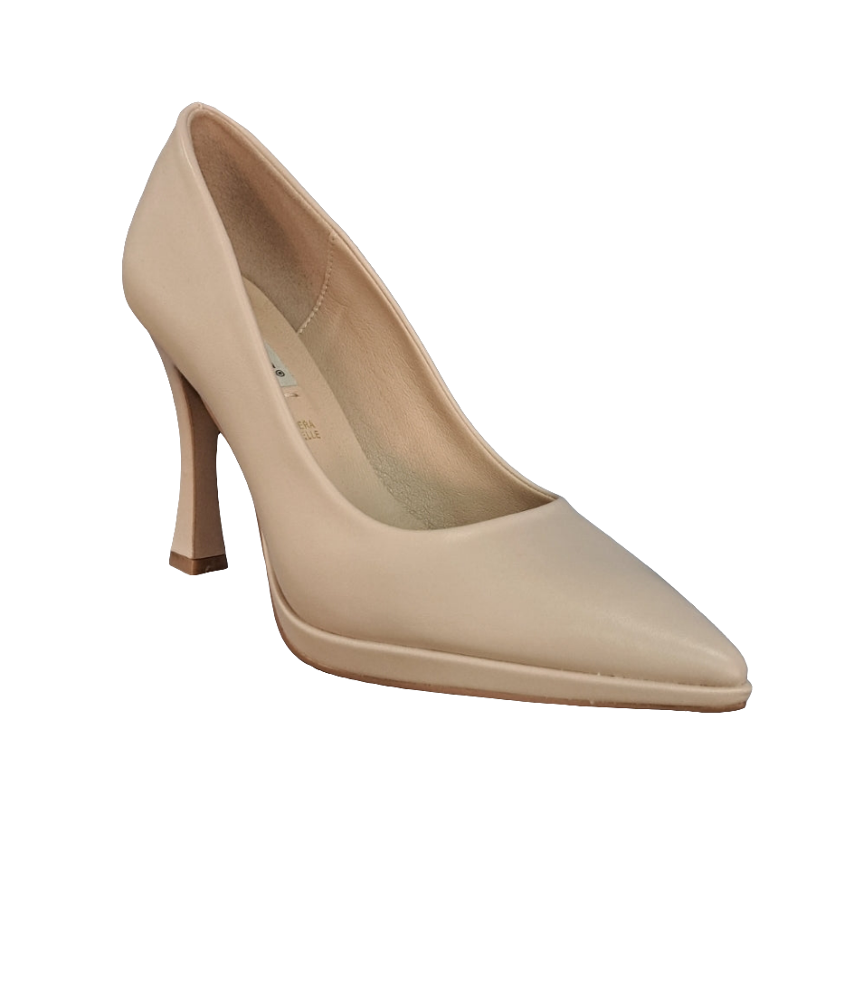 Decolleté linea intramontabile in ecopelle morbida. Soletta in pelle. Punta affusolata. Tacco 10cm plateau 1cm.