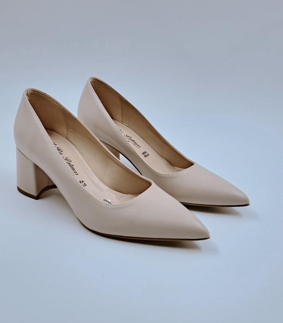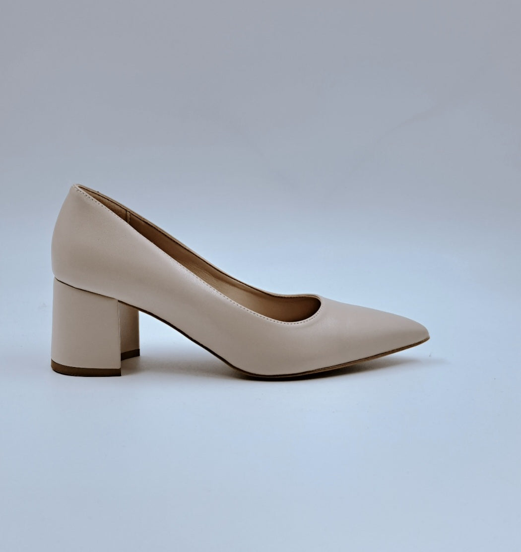 Decollete in ecopelle rivestita internamente in Vera Pelle. Soletta in pelle. Tacco a rocchetto 5 cm.
