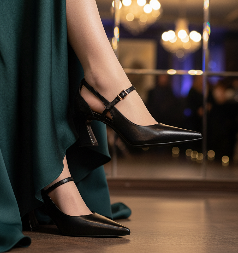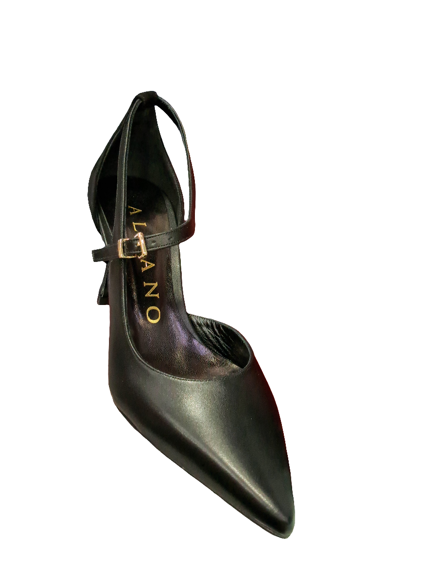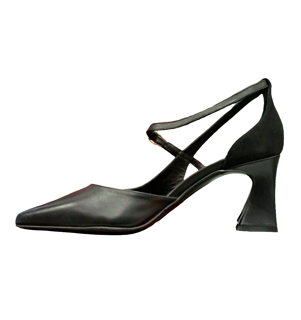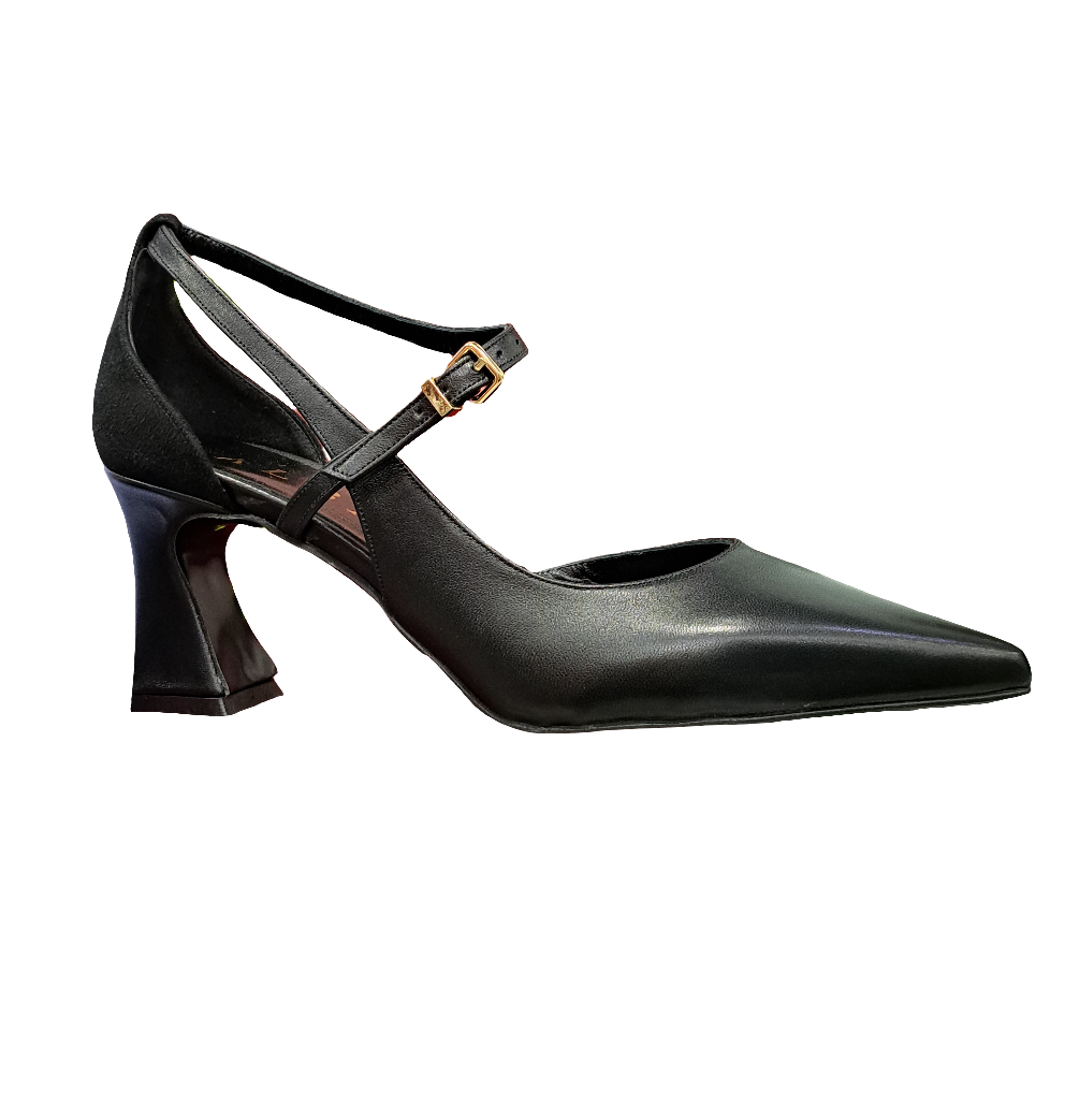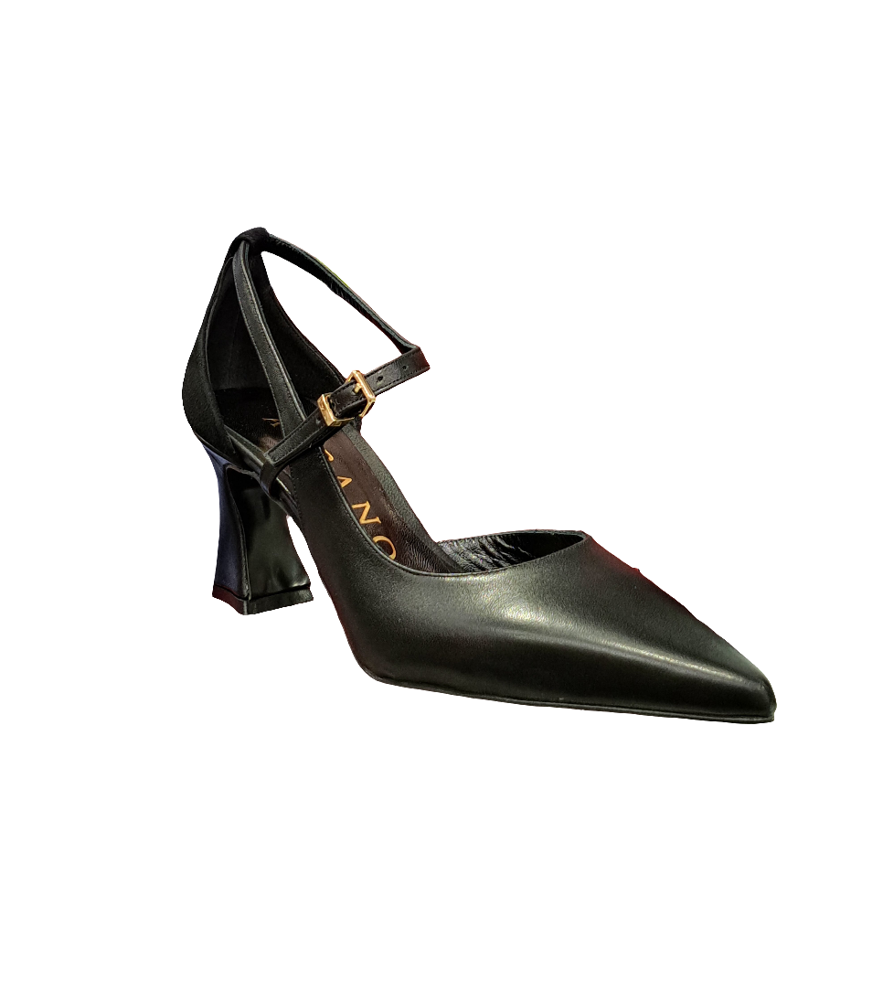 Decolleté in ecopelle, rivestita internamente in pelle. Chiusura con fibbia regolabile. Tacco semi largo 6,5cm