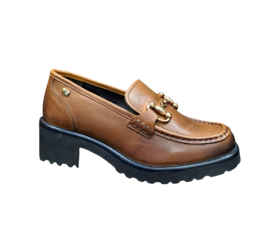 Mocassini in pelle morbida con applicazione metallica decorativa. Fondo gomma 4cm.