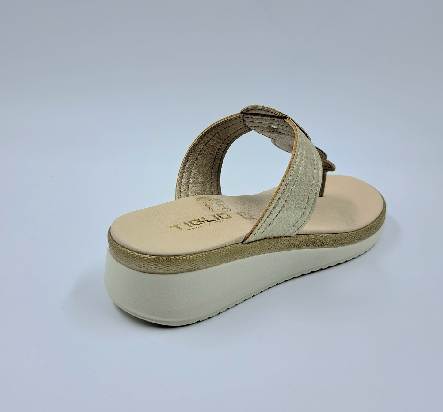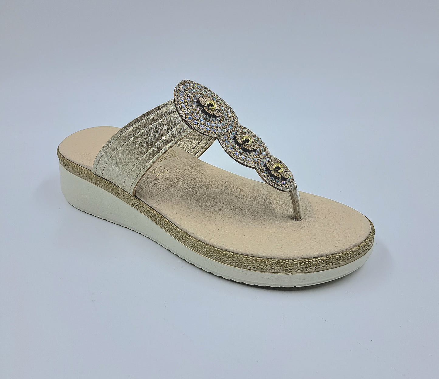 Pantofola infradito con decorazione strass. Morbido plantare in vera pelle. Tacco 3,5cm