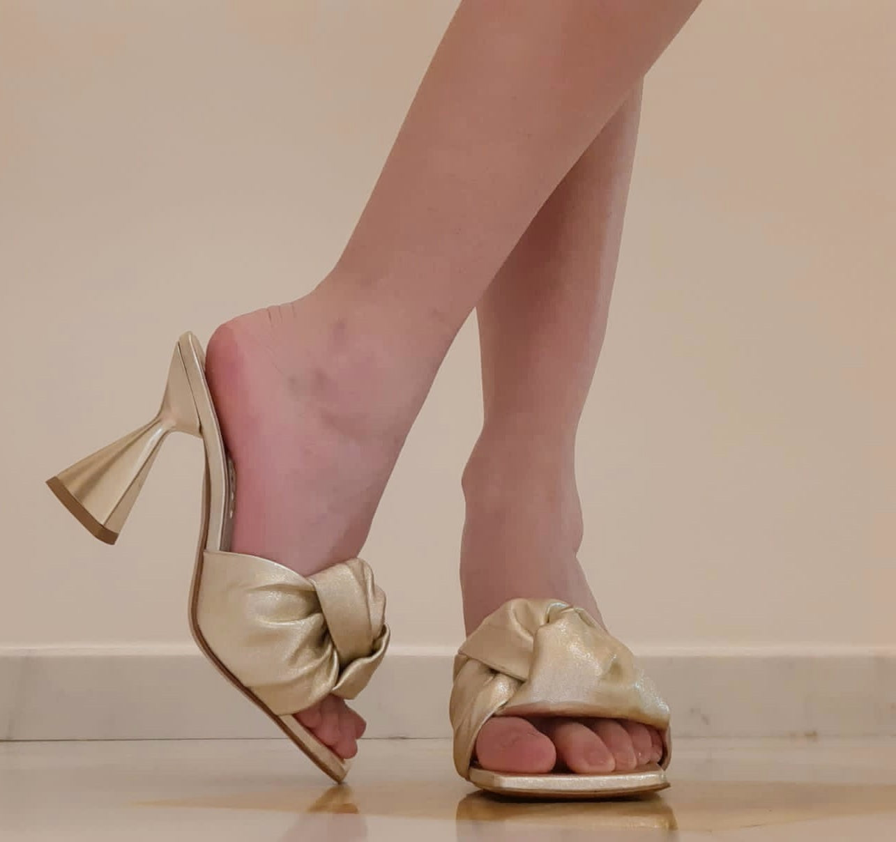 Sandali con fascia in pelle annodata. Sottopiede in pelle. Tacco a rocchetta 9,5cm