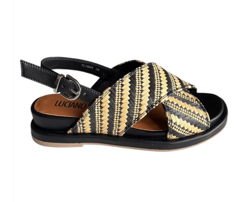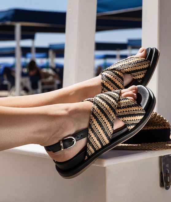 SANDALI RAFIA BICOLOR FASCE LUCIANO BARACHINI NERO