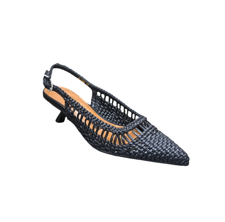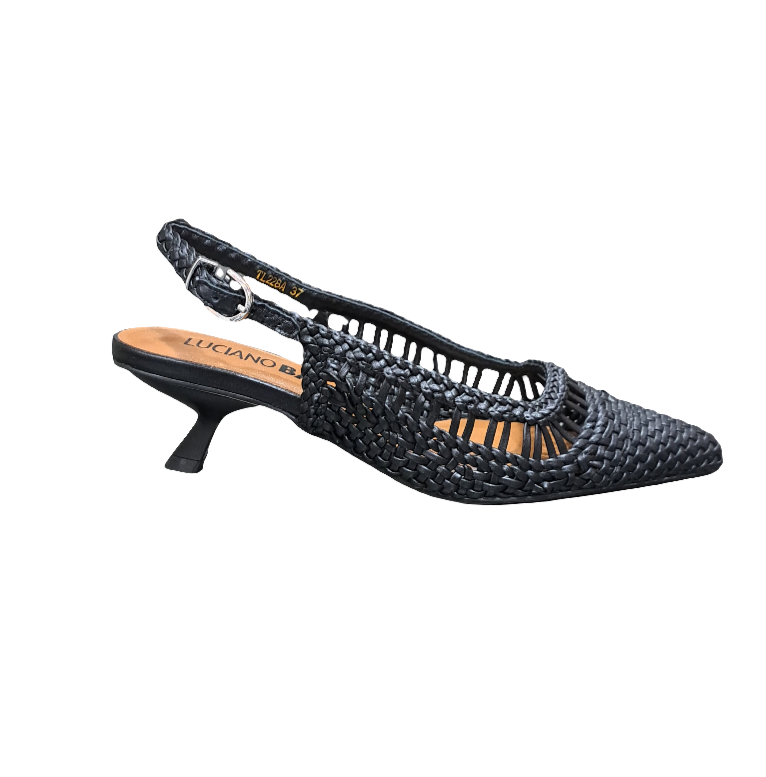 SANDALI SLINGBACK PELLE INTRECCIATA NERA