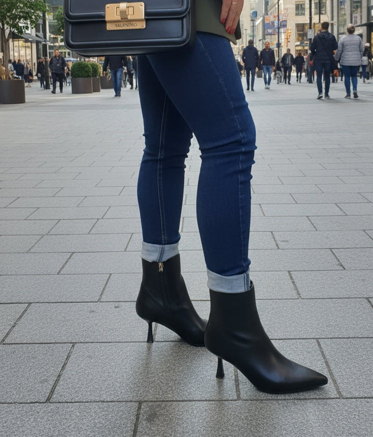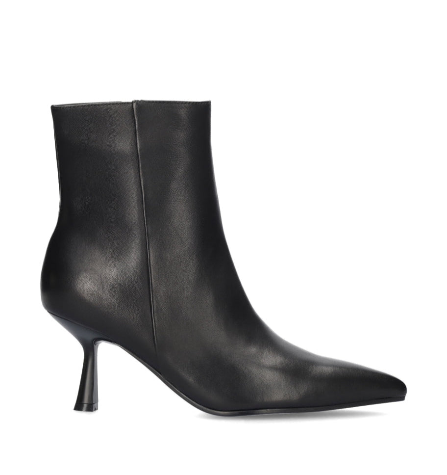 Stivaletto in pelle morbida, soletta in pelle. Punta affusolata. Tacco a rocchetto 7cm Chiusura con zip