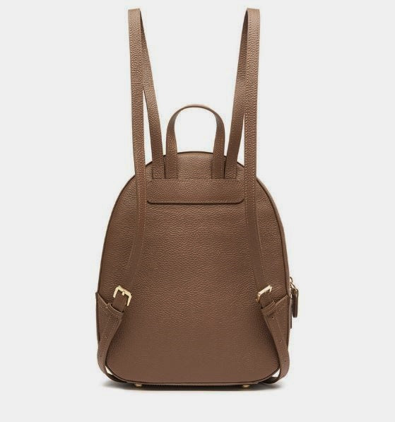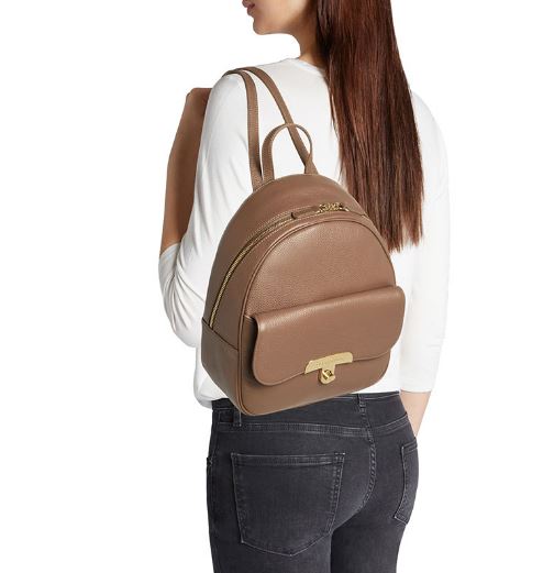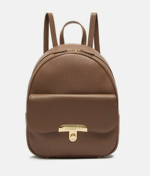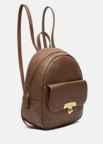 Zaino in ecopelle con tasca frontale cob chiusura clip metallica. Rivestito internamente con tessuto logato. Chiusura zip. Spallacci regolabili.