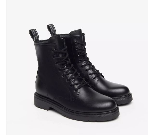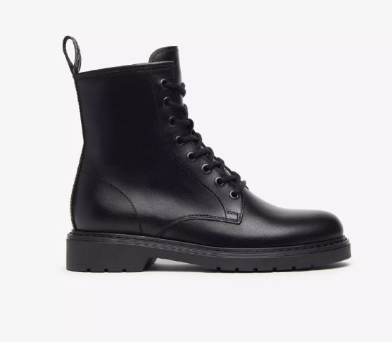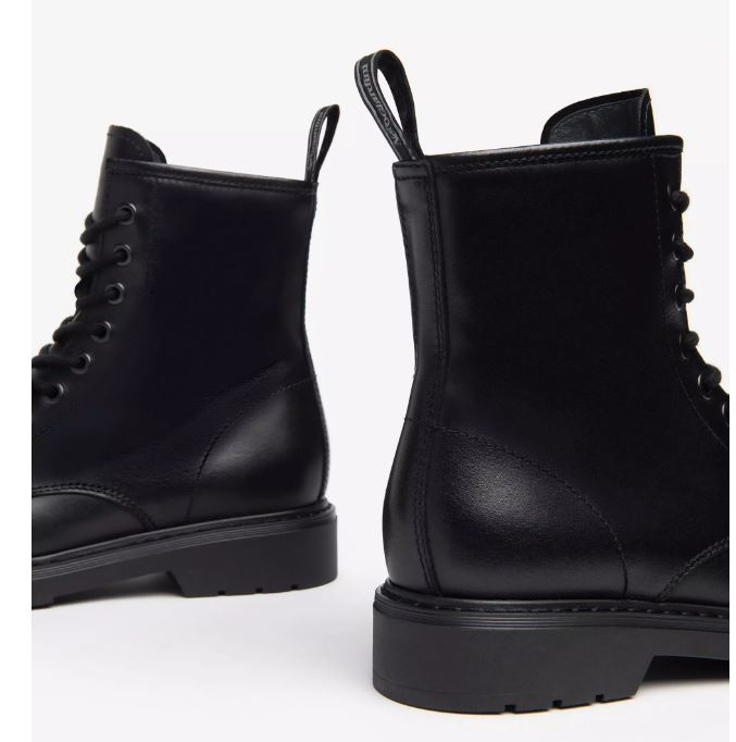Anfibio in vera pelle, rivestito internamente in pelle. Chiusura con lacci. Soletta in pelle removibile. Fondo gomma 3cm