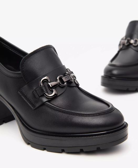 MOCASSINI PELLE NEROGIARDINI TACCO NERO