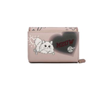 Portafoglio in ecopelle linea allround, stampe cuccioli gatto e cane forever friends. Scomparti carte e porta spicci con chiusura zip. Chiusura con clip.