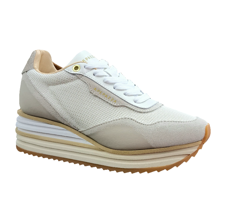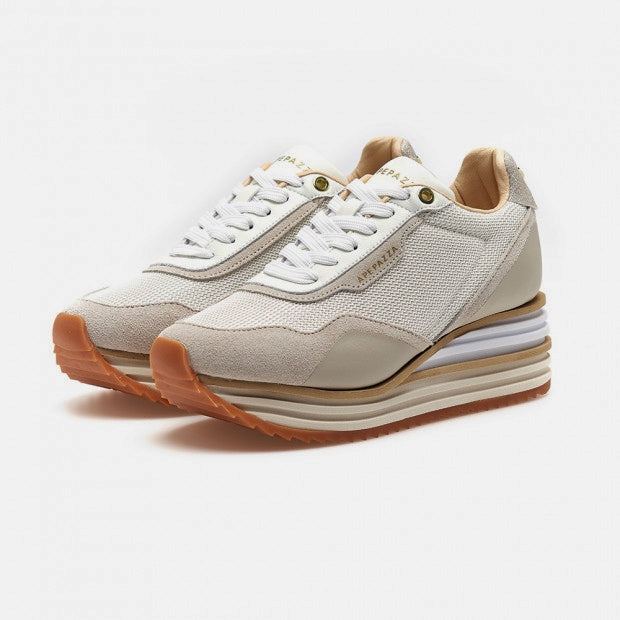 Sneakers in elle e tessuto tecnico e dettagli suede. Rivestita internamente in tessuto. Chiusura lacci. Fondo zeppa bicolor 5cm.