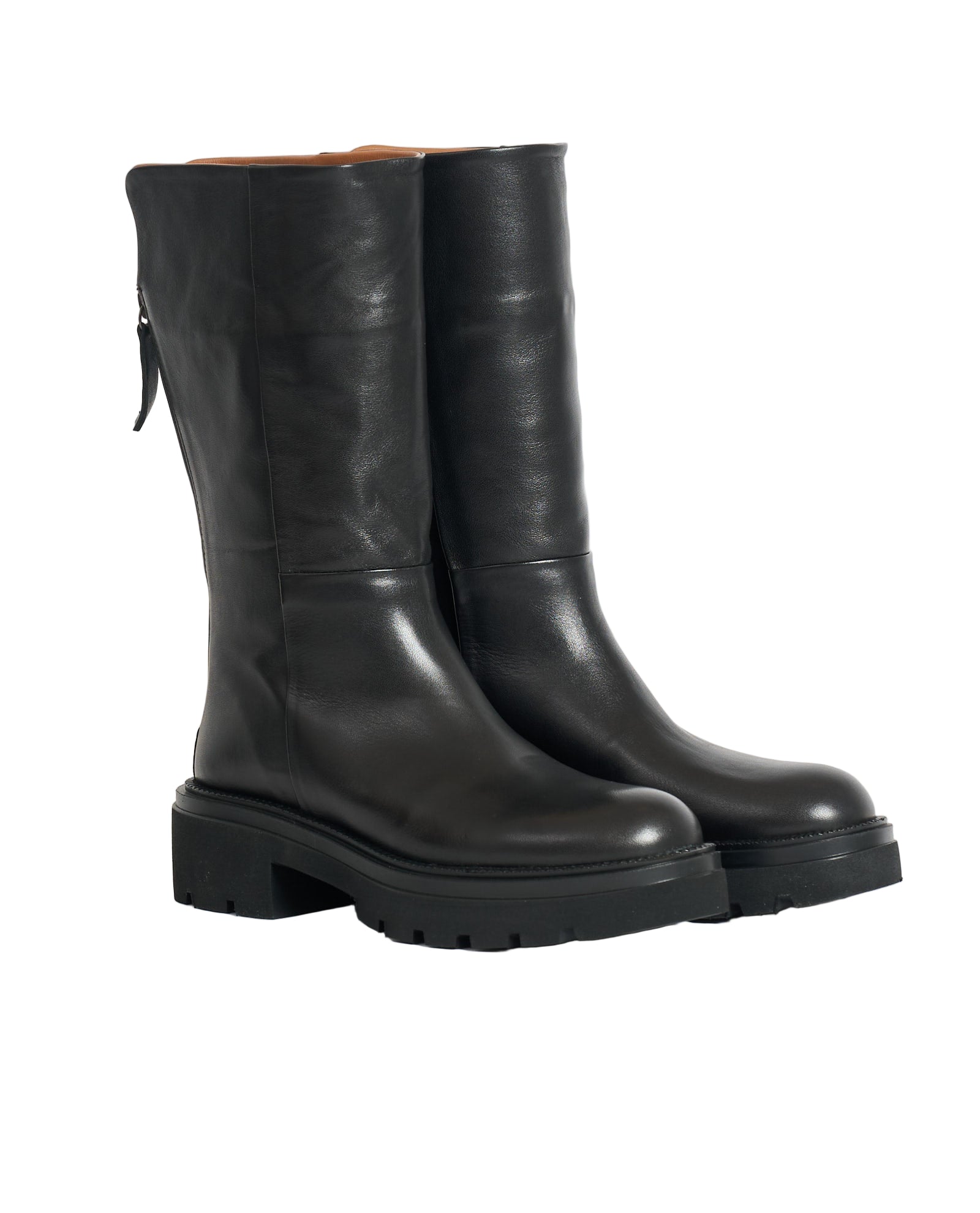 Stivali in pelle rivestito internamente in pelle. Chiusura con zip posteriore. Fondo gomma 5cm
