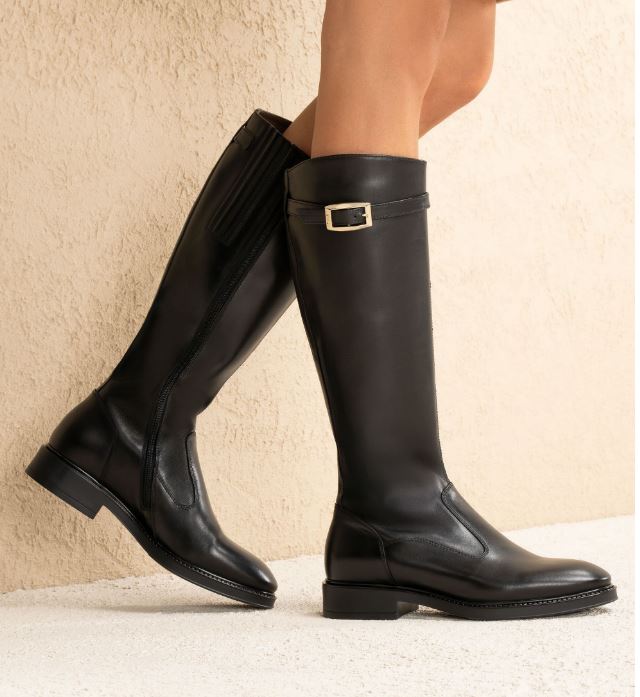 Stivali in pelle , rivestito internamente in pelle. Fibbia decorativa. Soletta in pelle. Chiusura zip. Fondo gomma tacco 3,5cm.